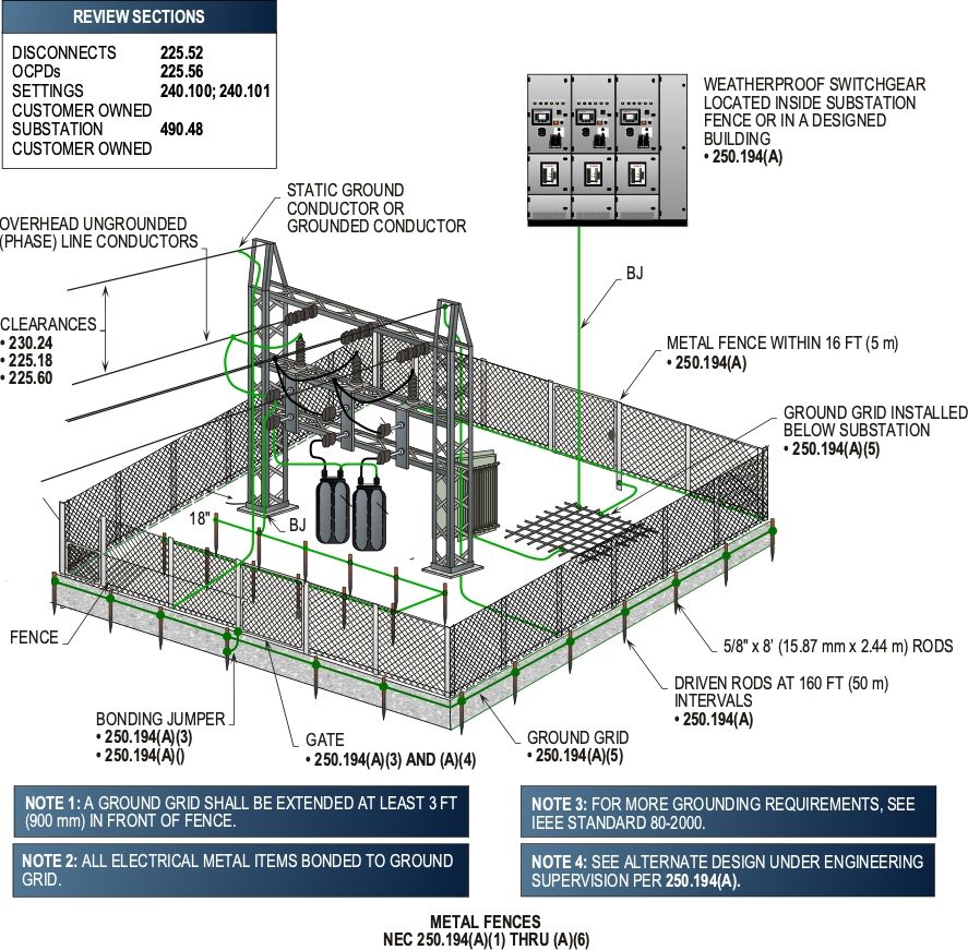 Information Note 2: See IEEE 80-2000, IEEE Guide for Safety In AC Substation Grounding, for design and installation of fence grounding.